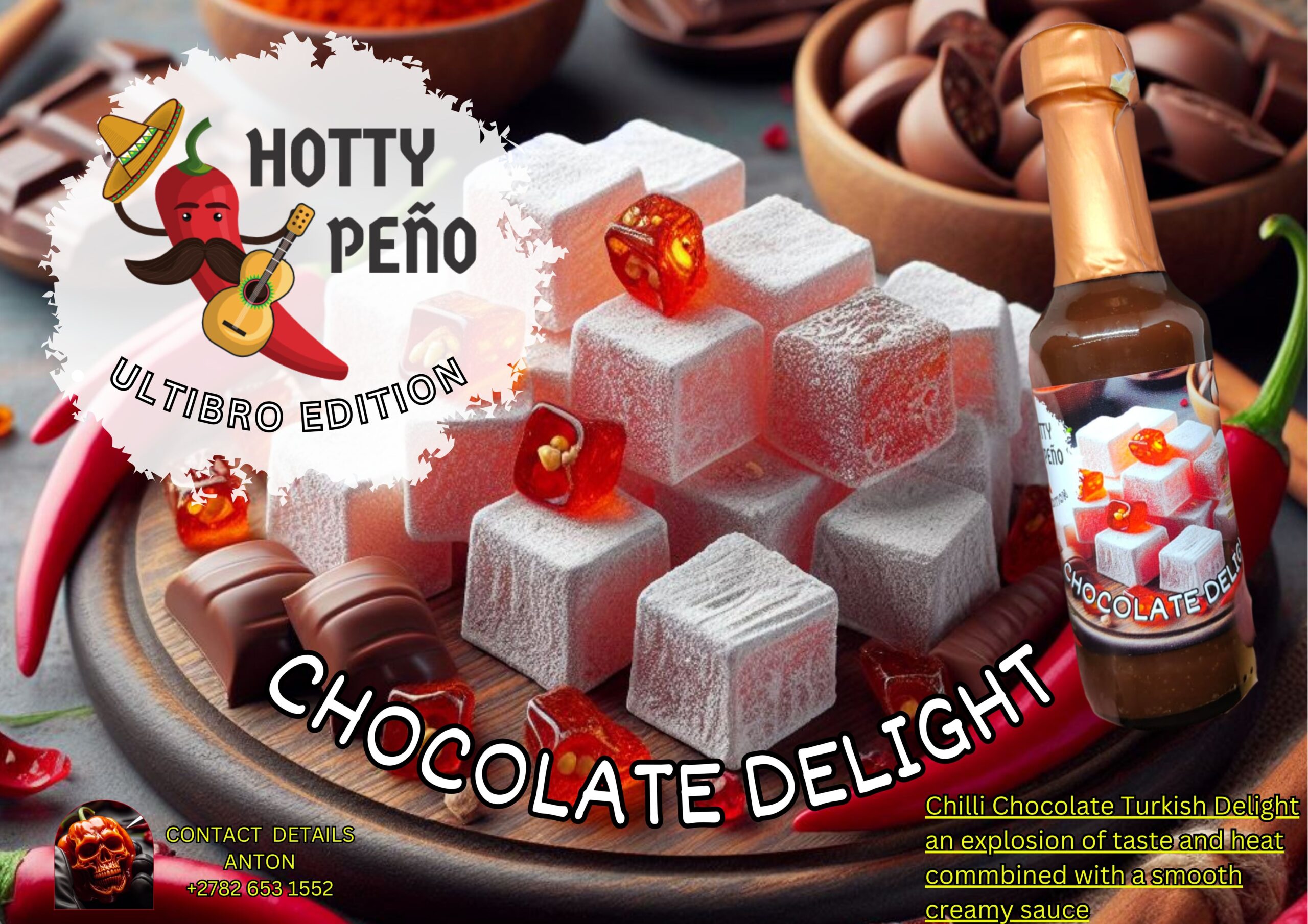 Chilli Chocolate infuse with Vodka and Turkish delight. This brings Chilli flavors to a new height full of sensation and flavor