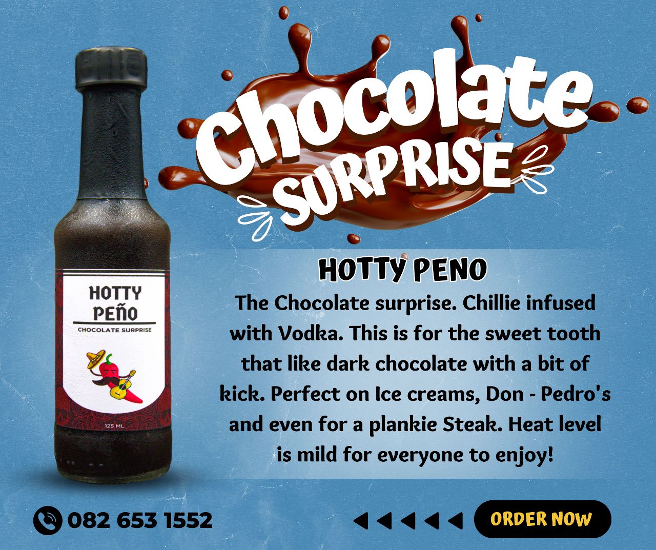 Chocolate infused with Chilli and Vodka. This is a real treat and Surprise