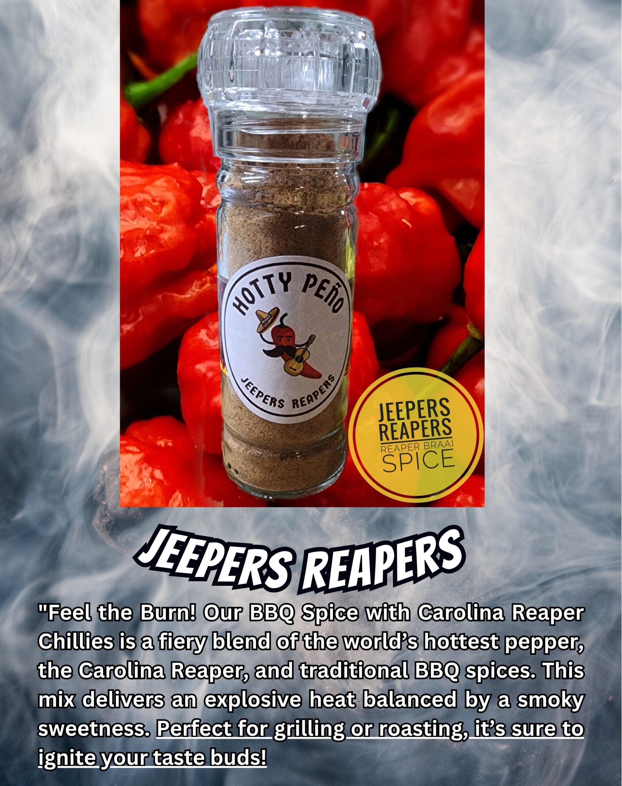 Hotty Peno's personal BBQ spice. This spice contain 6% Carolina Reaper powder and is sure to elevate any dish to a new height. Full of flavor, Heat and pure love